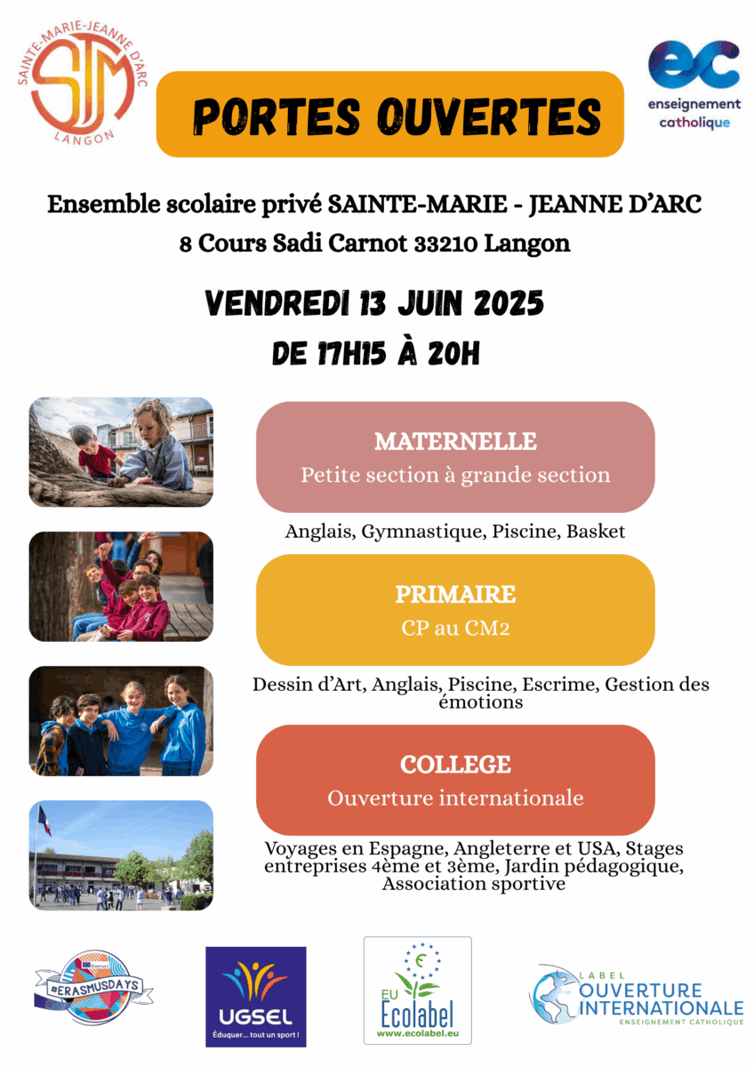 De la maternelle au collège en passant par l’élémentaire, L’Ensemble Scolaire Ste Marie Jeanne d’Arc propose un véritable parcours de progression pour votre enfant.